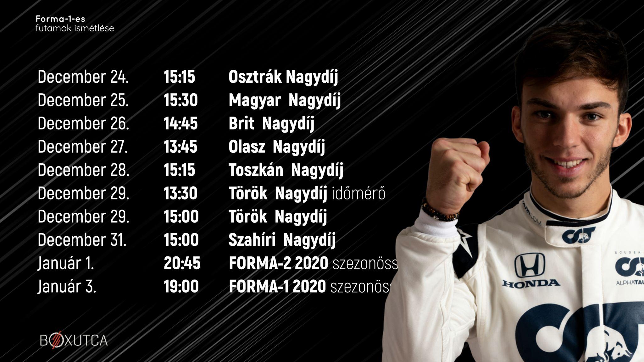 Akárhogy is volt, jó hír, hogy a karácsony és újév közötti időszakban minden nap délután újra átélhetjük 1-1 verseny történéseit az M4 Sport csatornán, majd januárban pedig két szezonösszefoglaló műsor is lesz.