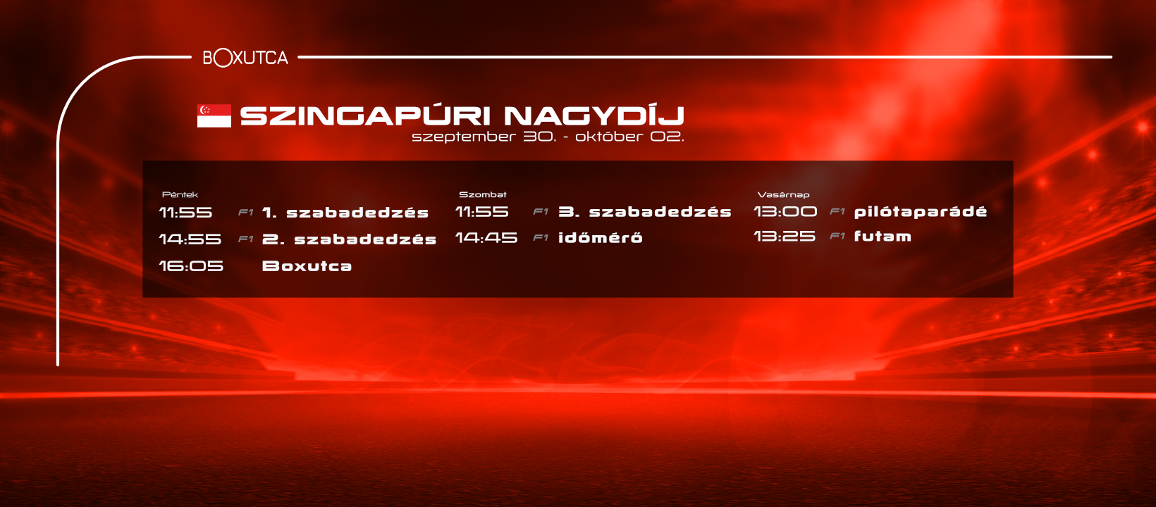 a futam 14:00-kor rajtol el, de előtte még a pilótaparádét is megnézhetjük 13:00-tól, majd a felvezetőműsor következik13:25-kor.