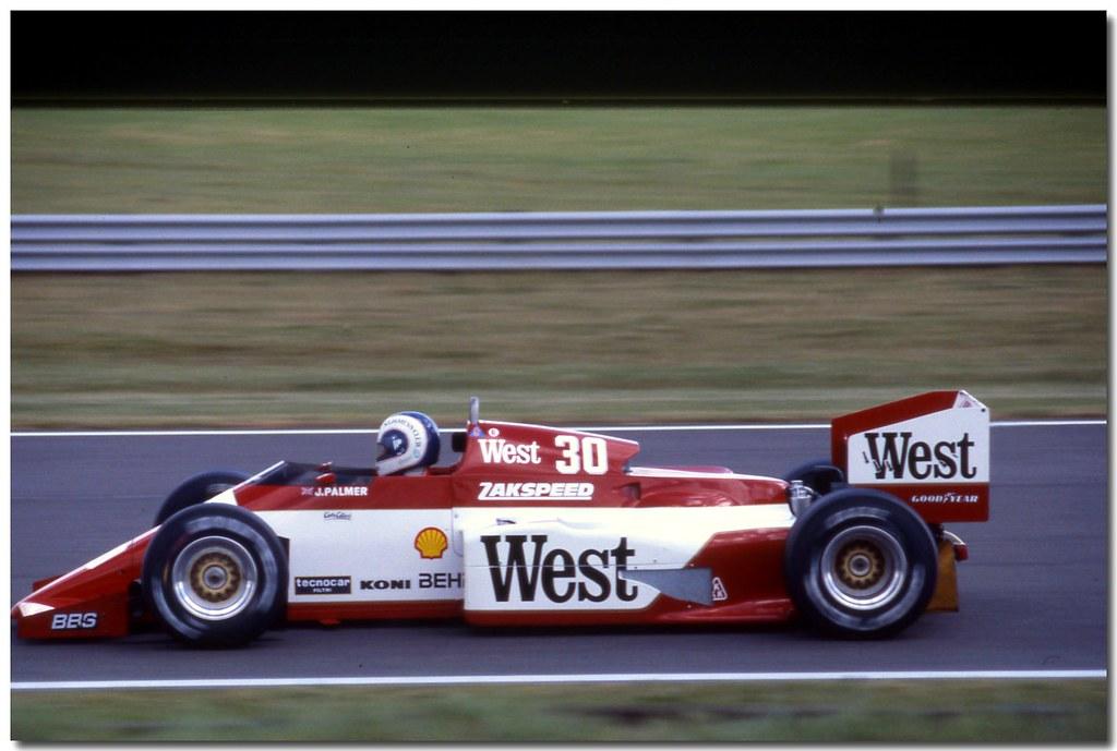 A Zakspeed-csapatot Erich Zakowski alapította 1968-ban. Kezdetben sportautókkal versenyeztek, sikereik nyomán pedig a Ford gyári csapatává váltak a német túraautó bajnokságban. A csapat által felkészített Ford Caprik, és Escortok taroltak a nemzetközi sportautóversenyeken, és olyan pilótákat neveltek ki, mint a későbbi DTM-legenda Klaus Ludwig. A nyolcvanas évek közepén a Ford végül úgy döntött, kihátrál a csapat mögül, így kényszerpályára kerültek. Zakowski teljesen váratlanul úgy döntött, a Formula-1-ben indítja csapatát, mégpedig mindenkitől független, önálló konstruktőrként – a motort is beleértve, ami a turbókorszak kellős közepén igen szokatlan volt, mivel csak a Ferrari, az Alfa Romeo és a Renault készített mindent házon belül ekkor, akik összehasonlíthatatlanul nagyobb kapacitással rendelkeztek, mint a kis nyugat-német csapat.
