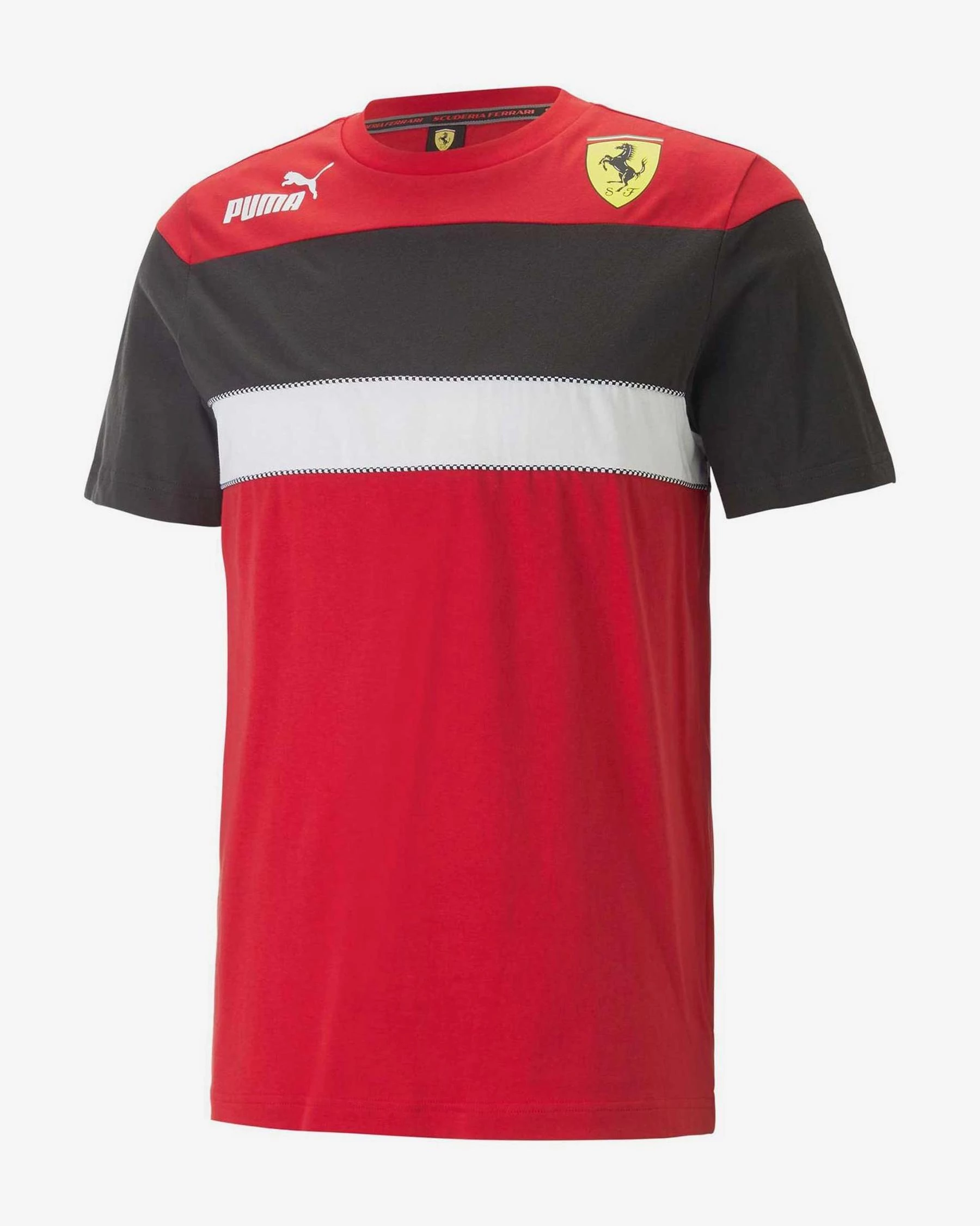 Igazán mutatós, sportosan elegáns póló a Pumatól a Ferrari azon rajongóinak akik szeretik az igazán különleges megjelenésű pólókat. Ebben a pólóban remek elegyet alkot a fekete, a fehér és természetesen a Ferrari vörös színe. Elején a legendás Ferrari emblémával és klasszikus Puma logóval. Anyaga 100% pamut.